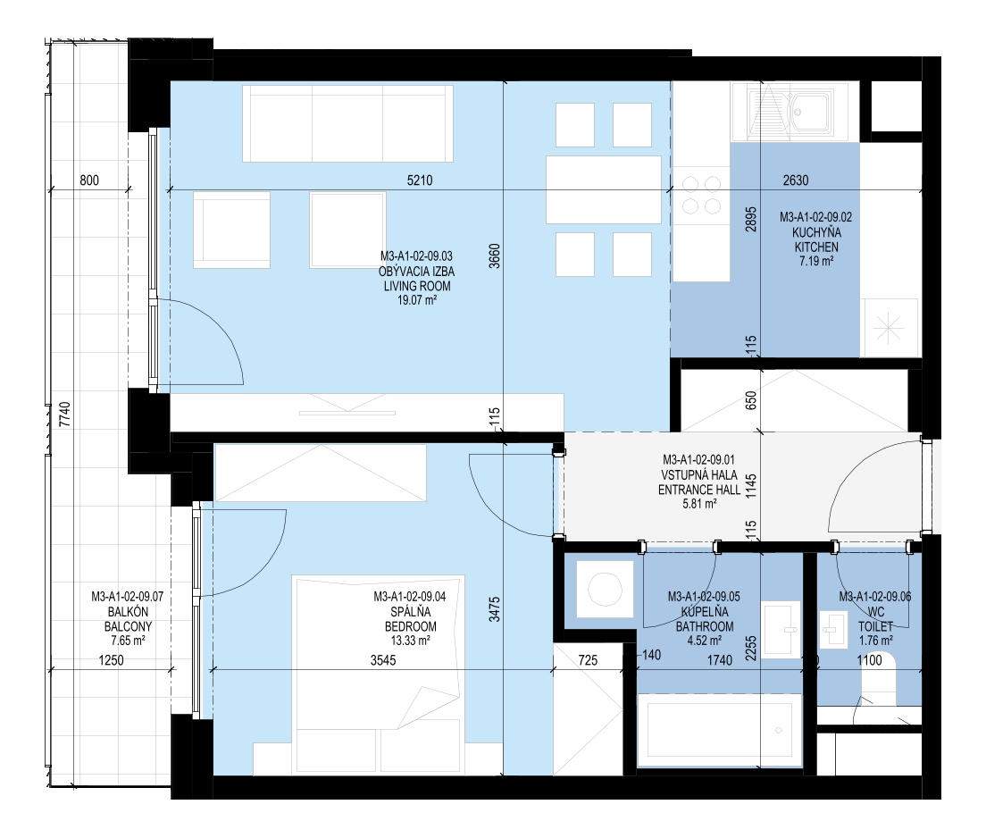 Dvojizbový byt s balkónom: M3-A1-02-09
