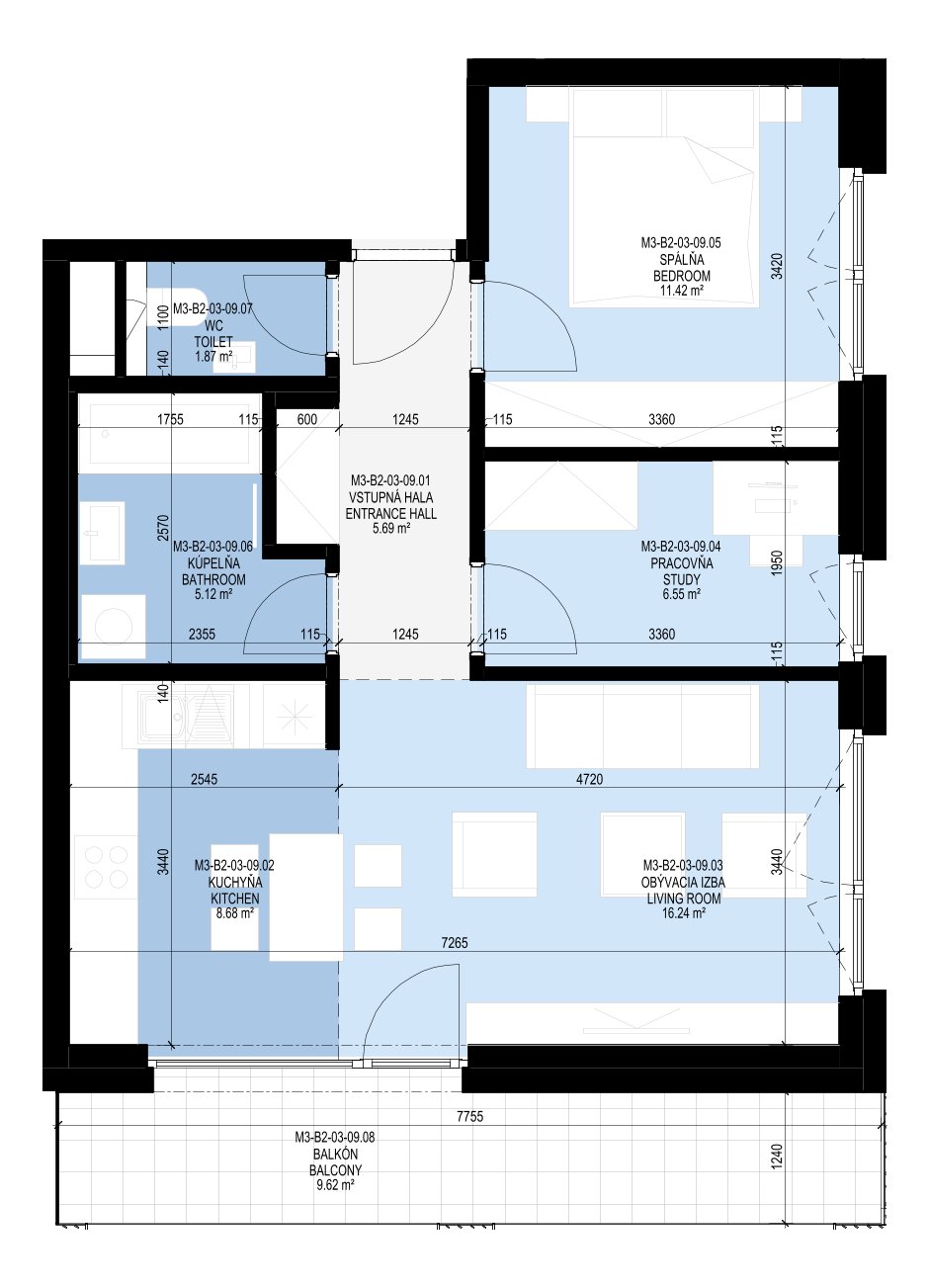 Dvojizbový byt s balkónom: M3-B2-03-09