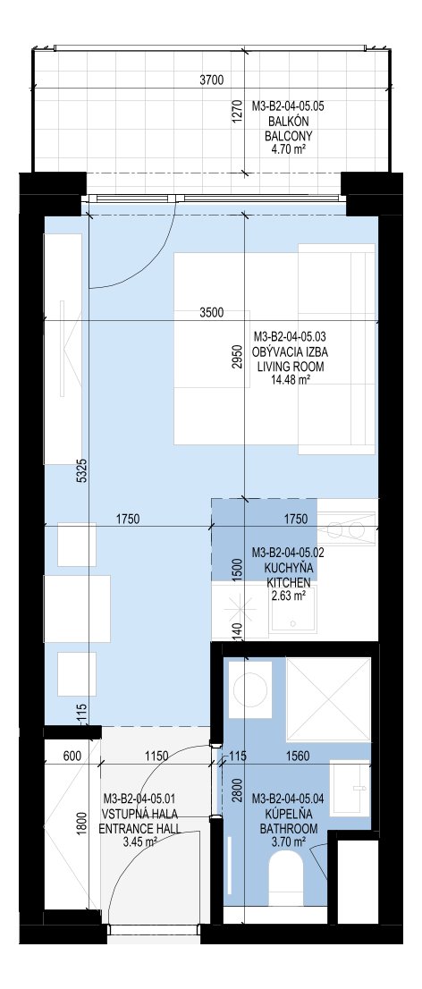 Jednoizbový byt s balkónom: M3-B2-04-05
